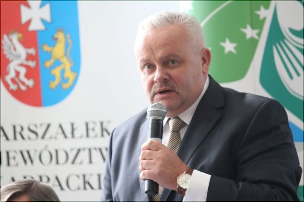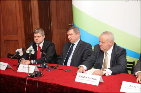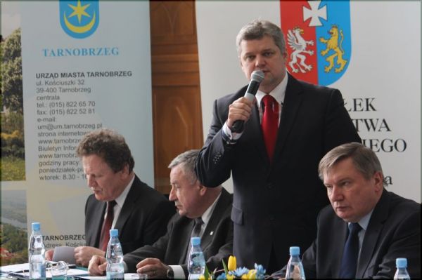 - Program ochrony przed powodzią dorzecza górnej Wisły wprawdzie jest programem rządowym, ale jego sukces zależy od ścisłej współpracy wszystkich partnerów publicznych, którzy są zainteresowani zwiększeniem bezpieczeństwa osób, które mieszkają na terenie tego dorzecza – mówił podczas spotkania pełnomocnik rządu, Wojewoda Małopolski Jerzy Miller. – Dzisiejsze spotkanie jest już kolejnym na terenie województwa podkarpackiego. Tym razem skupiliśmy się na północno-wschodniej części województwa, stąd była moja prośba, abyśmy się spotkali w szerszym gronie sąsiednich województw. Ponieważ musimy myśleć nie kategoriami podziału administracyjnego, tylko kategoriami zlewni. Bo jeżeli chcemy zapanować nad żywiołem powodzi, to trzeba patrzeć na dane dorzecze od źródeł aż do ujścia. Dlatego jestem wdzięczny Marszałkowi Województwa i Prezydentowi Tarnobrzega za to, że możemy wspólnie usiąść i porozmawiać o tym, co jest wspólnym zadaniem w ramach programu – mówił Jerzy Miller. Jak dodał, program nie jest łatwy, bo i problem nie jest łatwy. – Nie wystarczy mieć pieniądze i można już dobrze zadbać o bezpieczeństwo powodziowe. W tym roku realizujemy ponad sto projektów za kwotę ponad stu czterdziestu milionów złotych. I tak będzie co roku, przez najbliższe dwadzieścia lat – dodaje Miller.Norbert Mastalerz, Prezydent Tarnobrzega podczas krótkiej prezentacji mówił o zniszczeniach spowodowanych wystąpieniem powodzi w 2010 roku na terenie Tarnobrzega. Natomiast o zniszczeniach na obszarze powiatu tarnobrzeskiego opowiadał wicestarosta Jerzy Sudoł.