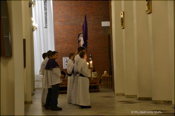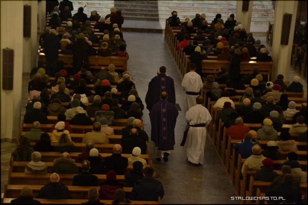Wierni z całego miasta zgromadzili się bardzo licznie w kościele Matki Bożej Królowej Polski w piątek 22 marca o godz. 19.30. Jeszcze podczas porannej mszy świętej proboszcz ks. Edward Madej podał do wiadomości, że uroczystość jest planowana. Przez cały jednak dzień sypał śnieg, drogi i chodniki były śliskie. Uznano, że w takich warunkach, jak powiedział proboszcz- ze względu na bezpieczeństwo- zdecydowano się na odprawienie nabożeństwa w kościele.