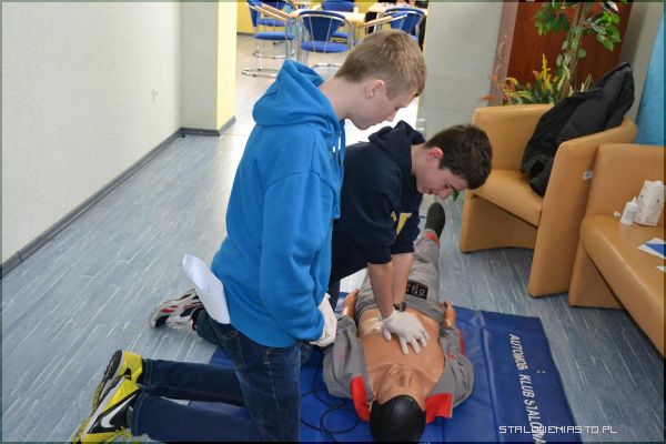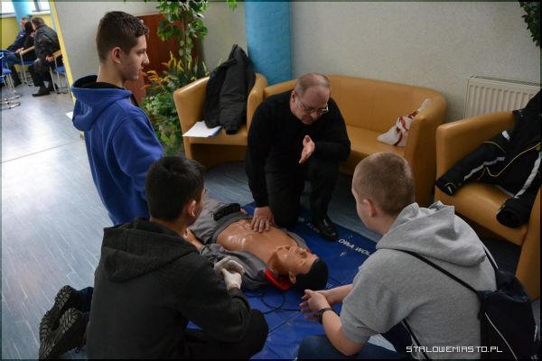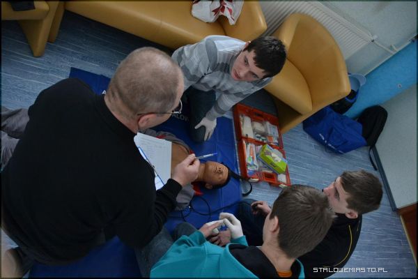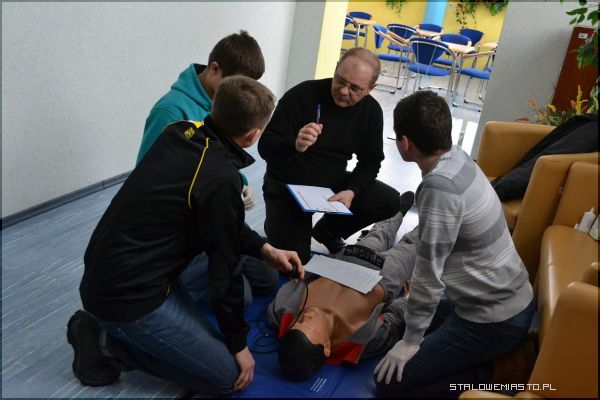 Po tej części turnieju drużyny 3- osobowe z danej szkoły przystępowały do zadania związanego z pomocą przedmedyczną. W tym roku w tym dziale pojawiły się zmiany, gdyż pomocy udzielano w grupach. Jedna z osób telefonowała, by sprowadzić pomoc, 2 zajmowały się natomiast nieprzytomnym człowiekiem, któremu trzeba było udzielić pierwszej pomocy do momentu przyjazdu pogotowia. Po zakończeniu scenki konkurujący ze sobą młodzi ludzie dowiadywali się co zrobili źle. Była to doskonała lekcja na przyszłość. Gimnazjaliści w ostatnim zadaniu wykazywali się jazdą po torze przeszkód, ten natomiast składał się z kilku elementów, m.in. równoważni, tarki, korytarza z desek, slalomu, pochylni, przekładania przedmiotu na uwięzi, zatrzymania się w miejscu. Uczestnicy sportowych zmagań mieli do dyspozycji dwa rowery. Wszyscy popełnili większe lub mniejsze błędy. W przypadku uczniów z podstawówki kolejność zadań była odwrotna, turniej dla nich rozpoczął się od jazdy rowerem. Test dla młodszych uczestników był nieco łatwiejszy (jednokrotnego wyboru).