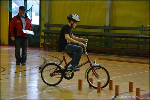 Podczas eliminacji, które odbyły się 3 kwietnia w Stalowej Woli uczestnicy zostali wylegitymowani, sprawdzono czy posiadają kartę rowerową. Później trzeba było się wykazać wiedzą i umiejętnościami. Gimnazjaliści najpierw zasiedli do testów z wiedzy dotyczącej zasad i przepisów o ruchu pieszych i rowerzystów. Test był wielokrotnego wyboru, zawierał 25 pytań. Przykładowe pytania jakie pojawiły się to: