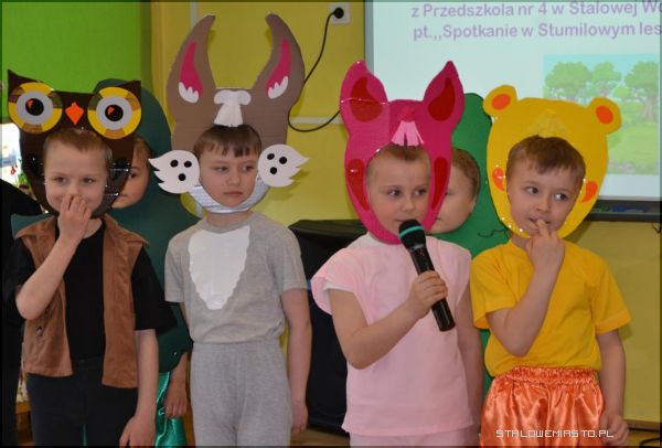 - Co roku mogę gościć tutaj w przedszkolu, cieszę się z tego, że starostwo powiatowe co roku wspiera działalność tego przedszkola oraz działanie tego konkursu, z którego my wszyscy się uczymy, a dzieci przy okazji uczą się od nas. Przeczytałam w zaproszeniu tę piękną misję tego przedszkola, że dzieci czują się tutaj bezpiecznie, są szczęśliwe, są radosne, uśmiechają się. Myślę, że dzisiejszy konkurs, ale i nie tylko dowodzi na to, że tak właśnie jest. To otoczenie pani dyrektor, nauczycieli sprawiają, że te dzieci są radosne i szczęśliwe, i oby było tak dalej - mówiła Lila Wojciak z Wydziału Edukacji, Kultury i Zdrowia Starostwa Powiatowego.Rozstrzygnięcie konkursu uświetnił występ zespołu teatralnego „Biedronki” z Przedszkola nr 4 w Stalowej Woli. Dzieci wcieliły się w postacie ze Stumilowego lasu, które uczyły jak należy się zachować w lesie. W przedszkolu podczas finału można było podziwiać także wernisaż prac pokonkursowych. Z różnego rodzaju surowców dzieci wykonały roboty, samochody, misie, pociągi i inne ciekawe rzeczy.