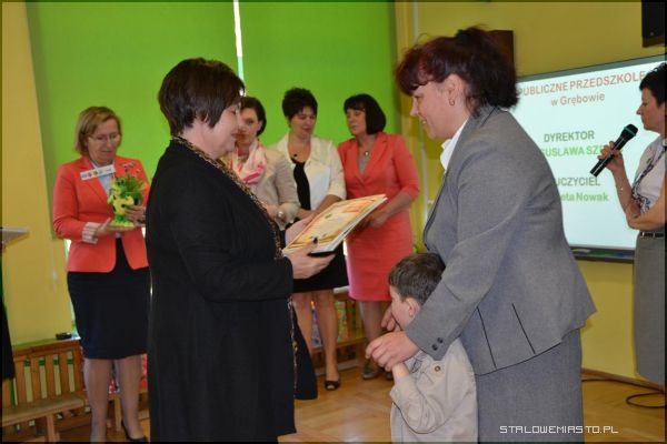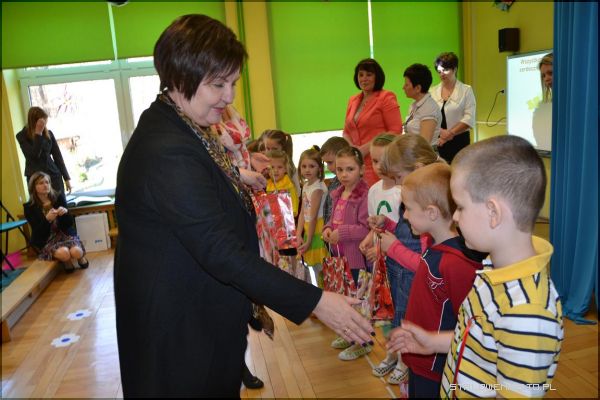 Wszyscy uczestnicy konkursu otrzymali nagrody z rąk zaproszonych gości: Poseł na Sejm RP Renaty Butrym, Naczelnika Wydziału Edukacji i Zdrowia Haliny Wołos. Dyrektor przedszkola Maria Zubrzycka podziękowała również sponsorom konkursu, którym wręczono wiosenny upominek.