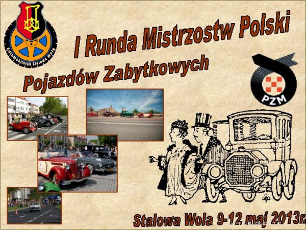 W pierwszym dniu eliminacji Mistrzostw Polski Pojazdów Zabytkowych (9-12 maja) trasa przebiegać będzie drogami dawnej puszczy sandomierskiej gdzie 600 lat temu odbywały się królewskie polowania przed Bitwą Grunwaldzką, a w latach 20 i 30 ubiegłego wieku Austro -Daimlerem i Bugatti 37A jeździła najbardziej znana i utytułowana zawodniczka wyścigów samochodowych Maria Koźmianowa, w miejscowości Stany koło Bojanowa miała swój dom i garaże, w których przygotowywano samochody do sportu. Kolejne na naszej trasie miasto to Kolbuszowa - miasto o niezwykle ciekawej historii będącego nawet przez kilka dni „Stolicą Polski”, następnie uczestnicy udadzą się do Nowej Dęby – miasta powstałego przy zbudowanej w ramach Centralnego Ośrodka Przemysłowego fabryce amunicji, oraz do Tarnobrzega i Grębowa gdzie zostaną przeprowadzone próby sportowe.