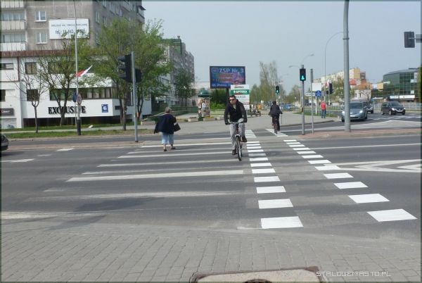 Wzdłuż ul. Popiełuszki ciągnie się jedna z najbardziej uczęszczanych ścieżek rowerowych w Stalowej Woli. Miłośnicy jednośladów narzekali jednak na to, że na skrzyżowaniu Aleje Jana Pawła II /ks. J. Popiełuszki, które znajduje się zaraz przy Konkatedrze ktoś o nich zapomniał i nie zrobił przejazdu rowerowego obok pasów. Efekt tego był taki, że część rowerzystów przejeżdżała przez ulice na zebrze nie bacząc na to, że łamią przepisy ruchu drogowego. Za taką jazdę groził mandat w wysokości 100 zł. Teraz nie należy już się obawiać, bo nie trzeba też zsiadać z roweru i przeprowadzać go na drugą stronę. Tuż przed długim weekendem przejście dla pieszych zostało nieco zwężone, a w zamian za to, pojawił się odpowiednio oznakowany przejazd dla rowerzystów. Zmiany dotyczą również sygnalizacji dla pieszych, która wskazuje teraz światło zarówno dla rowerzystów jak i pieszych.