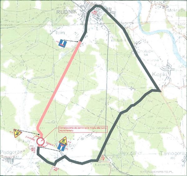 W związku z przebudową mostu w ciągu drogi powiatowej Nr 1078R Rudnik - Pikuły od 7 maja zamknięta została dla ruchu kołowego powyższa droga. Planowane zakończenie robót nastąpi końcem sierpnia tego roku.