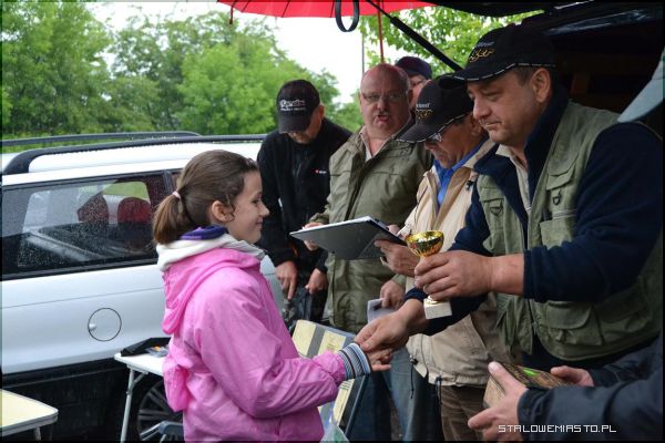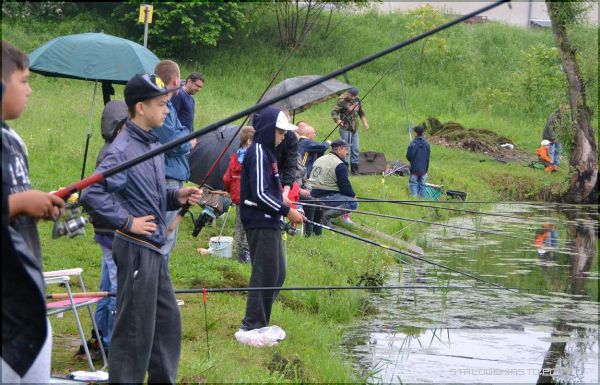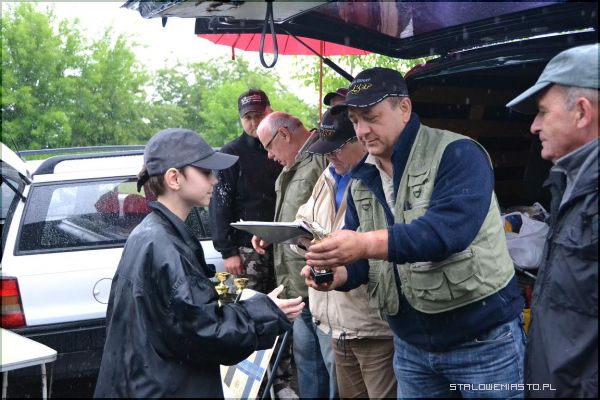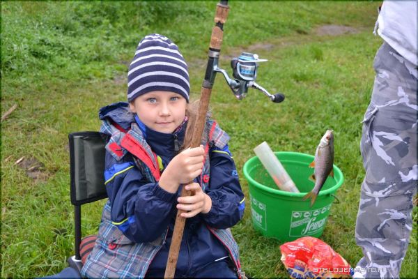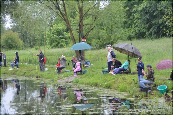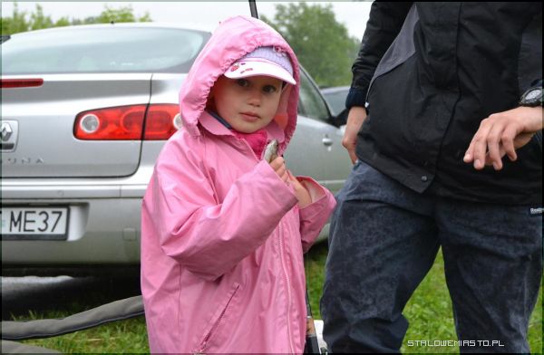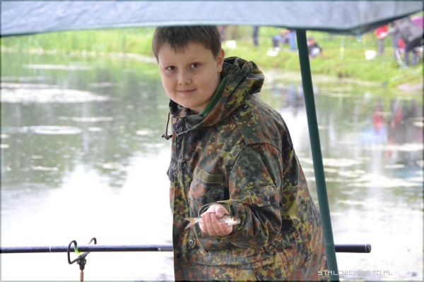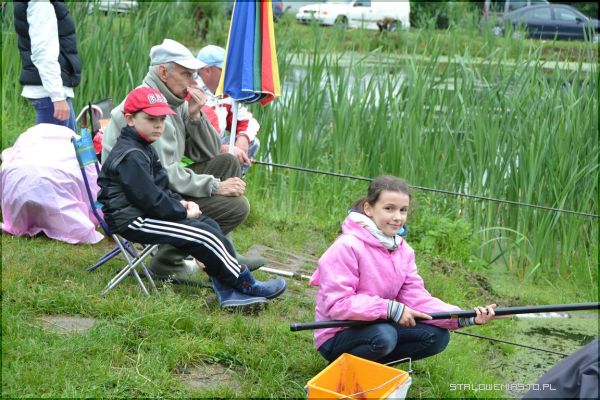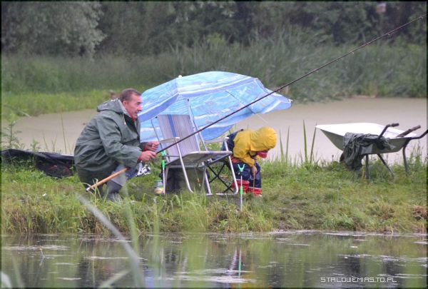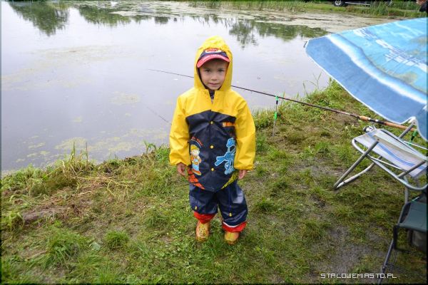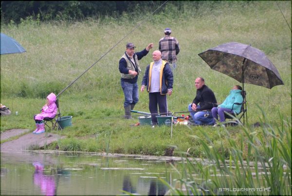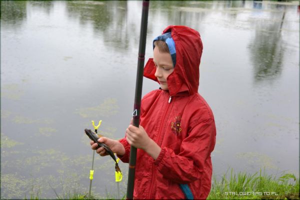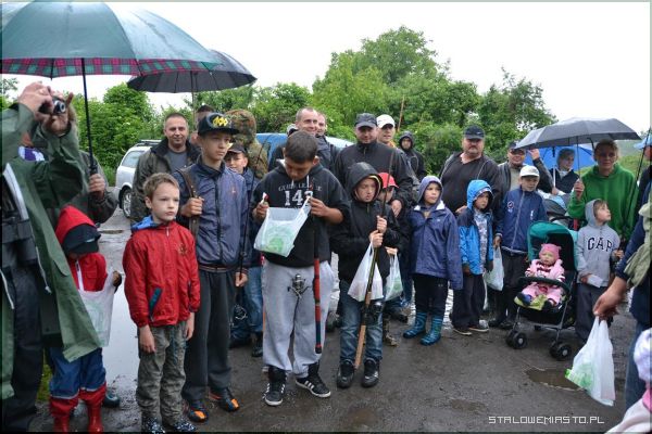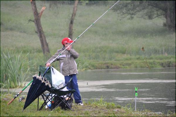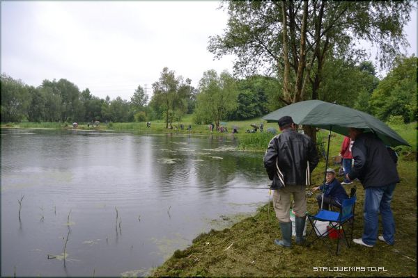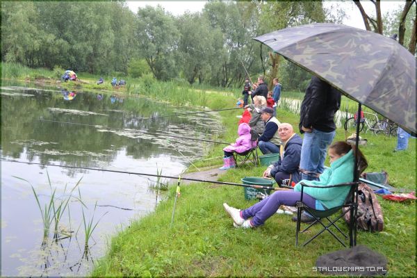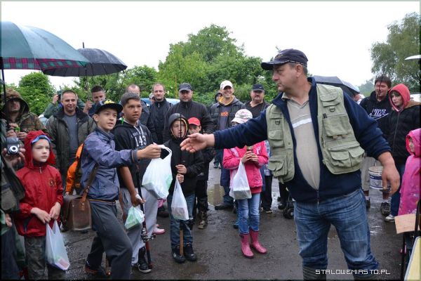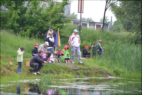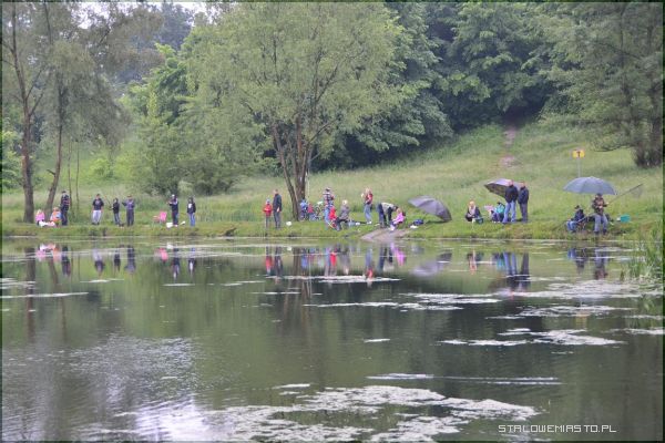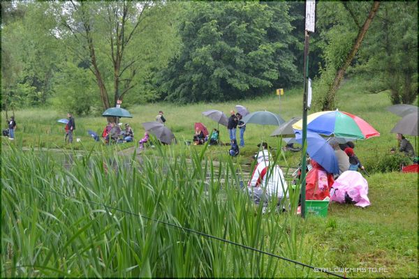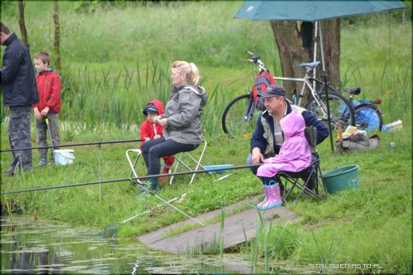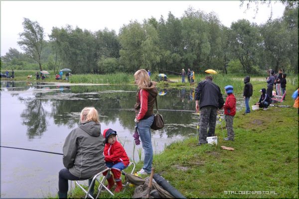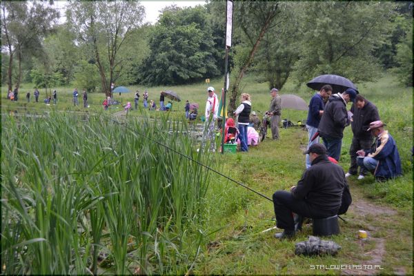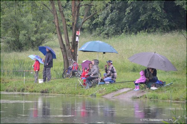 Jeszcze pół godziny przed imprezą zastanawiano się nad tym, czy jej nie odwołać. Pogoda od rana niestety nie należała do najlepszych. Dzieci jednak nie zważają na deszcz, w sercach mają wiele ciepła, promienny uśmiech na twarzy, słońce w głowie, gorącą chęć rywalizacji i takie rzeczy jak pochmurne niebo czy kapiące krople wody na głowę nie przeszkadzają im w dobrej zabawie, zwłaszcza jak ta zabawa ma miejsce w ich święto. Przed godz. 10.00 przy Oczku stało już wielu chętnych do wędkowania. Niektórzy młodzi wędkarze nieco zaspali i docierali nawet przed godziną 11.00. Być może byli to ci, którym nieco więcej czasu zajęło przekonanie swoich rodziców, że warto wybrać się nad staw, zwłaszcza, że okolica jest piękna, wszystko wokół zostało wysprzątane, krzaki wycięte, zanieczyszczenia usunięte, a stalowowolski stawik dzięki pracy wędkarzy lśni czystością.