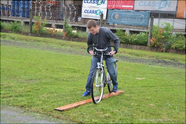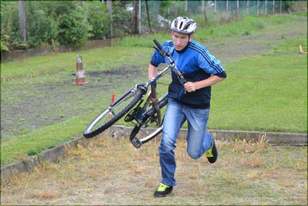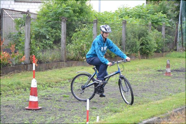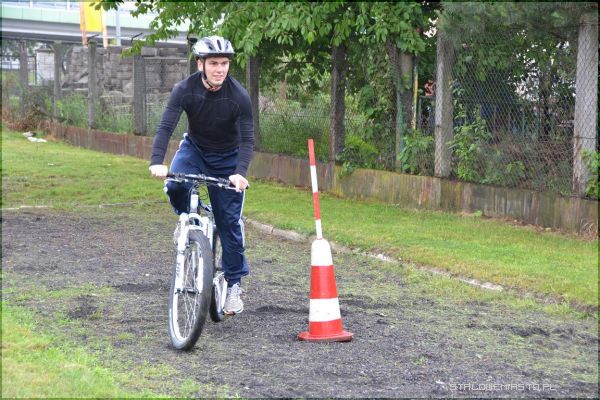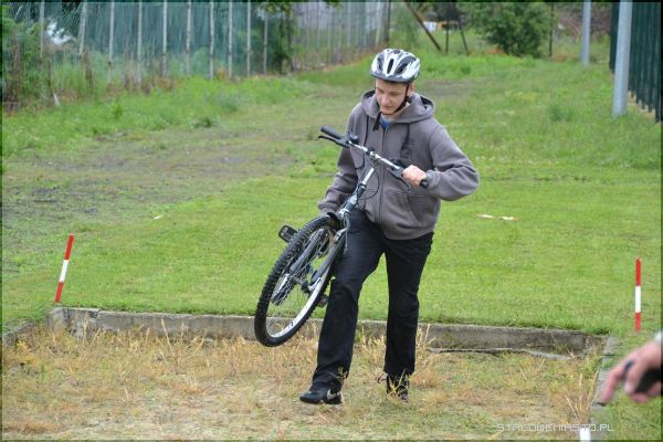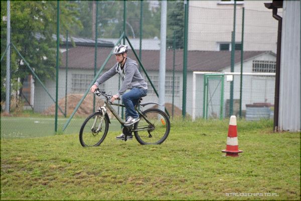 Pierwsza pomoc przedmedyczna - Uczniowie generalnie dysponują dużą wiedzą, nie widzą jednak szczegółów, mają teoretyczną wiedzę, jednak nie umieją jej zastosować. Jest to dla nich po prostu za trudne, jest lęk, są obawy, jest niepewność. Praktyka czyni mistrza, sama wiedza nie wystarczy. Tego typu konkurs pomoże im uświadomić sobie w jaki sposób połączyć praktykę z teorią – mówi Ewa Wawruszko. Etap trzeci – część praktycznaCzęść praktyczna przypadła uczniom najbardziej do gustu. Choć pogoda nie sprzyjała, przez co nawierzchnia na każdym z torów była mokra, nikt nie narzekał. Największe trudności sprawiał tor do jazdy rowerem, a niestety każda podpórka groziła doliczeniem karnych sekund. Niektórym zawodnikom dodawano nawet 60 sekund.