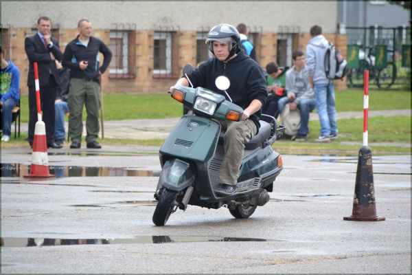 - Ideą turnieju jest promowanie bezpieczeństwa w ruchu drogowym oraz popularyzowanie tej wiedzy wśród uczniów. Uczniowie mogą się przekonać jeżdżąc nie na czas po torach, lecz techniczną jazdą, że prędkość to nie wszystko, potrzebna jest jeszcze odpowiednia technika – mówi Wojciech Owanek z Zespołu Szkół Ponadgimnazjalnych nr 3 im. Króla Jana III Sobieskiego w Stalowej Woli. Teoria była trudnaUczniowie w pierwszej kolejności musieli zmierzyć się z częścią pisemną. Test wielokrotnego wyboru składał się z 20 pytań. Jak twierdzą uczniowie, część z nich była podchwytliwa, a pytano m.in. w jaki sposób sprawdzić przytomność u poszkodowanego, gdzie zabrania się zawracania, czym jest śluza dla rowerów, jak powinien zachować się kierujący pojazdem silnikowym we mgle, w jakich warunkach nie stosuje się defibratora AED, kiedy stosuje się znak A-13 itp. Część teoretyczna sprawiła uczestnikom turnieju spore trudności. Błędne odpowiedzi pojawiały się w co 2- 3 pytaniu.