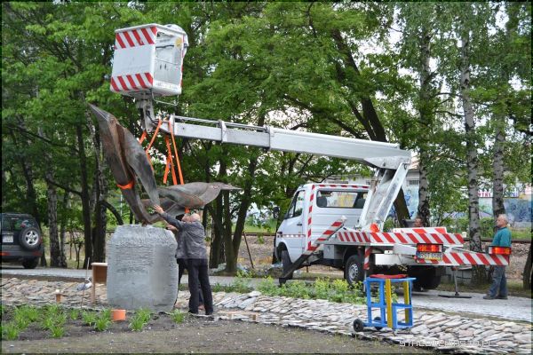 „Alegoria ptaków zbierających się do lotu” to druga rzeźba autorstwa prof. Stanisława Magdziaka, która pojawiła się w parku. Ok. godz. 15.00 mały tłumek gapiów przyglądał się montażowi ostatniego dzieła...