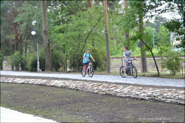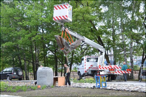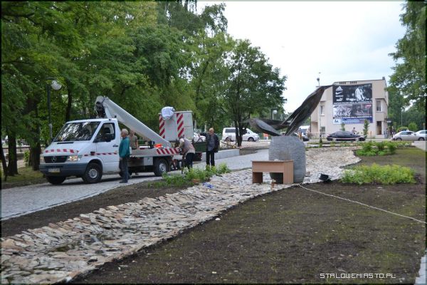 - Strumyk jest całkiem fajny, nie podoba mi się jednak ten kamienny deptak, z wózkiem to tu się jeździ okropnie, więc raczej niewiele osób z małymi dziećmi przyjedzie by im pokazać fontannę. Trochę też nie ma gdzie usiąść. Są niby jakieś kamienie, ale są tak duże, że zmieściłoby się na nich kilka, a może i kilkanaście osób, gdzie tu odrobina prywatności? Nie chcę żeby ktoś podsłuchiwał o czym rozmawiam z mężem– mówi młoda kobieta, która razem z maleńkim synkiem przyszła obejrzeć park.W środę 5 czerwca profesor Magdziak przywiózł drugą z rzeźb. Do postawienia jej potrzebny był podnośnik. Jak się dowiedzieliśmy, sama rzeźba waży ok. 200 kg, w środku jest pusta. Jej wysokość to 2,5 metra. Kamień, na którym zasiadają ptaki waży prawie pół tony. Profesor podjął decyzję, że rzeźba zostanie usadowiona na kamieniu już teraz, gdyż prace związane ze szlifowaniem granitu (aż do uzyskania kształtu jaja oraz ciemnego połysku) potrwają jeszcze do końca tygodnia. Zrobienie rzeźb zajęło rok. By uniknąć dewastacji rewitalizowanej przestrzeni, w parku pojawiły się kamery. Jedna z mieszkanek, z którą dziś rozmawialiśmy na temat zmian, jakie zaszły w tym miejscu wyraziła obawę, że wkrótce cały urok tego zakątka zniszczą gołębie. Przed rozpoczęciem prac przez park ciągnęła się alejka asfaltowa, a na niej przesiadywało ogromne stado gołębi, które regularnie dokarmiali mieszkańcy.