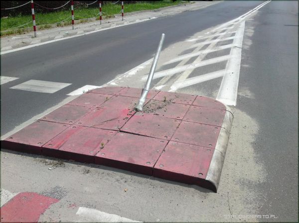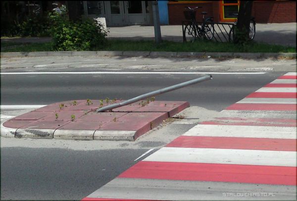 Sobotnie popołudnie na pewno zapamięta kierująca czarnym Seicento 29- letnia kobieta. Około godziny 15:30 wypadła z drogi i dosłownie skosiła dwa znaki drogowe umiejscowione na wysepkach rozdzielających przejście dla pieszych. Ulica naprzeciw bloku Poniatowskiego 3 należy do bardzo ruchliwych. W miejscu zdarzenia łączą się dwie drogi: jedna biegnąca w stronę osiedla Flisaków, druga wiodąca w stronę sklepów, poczty- tędy jadą również mieszkańcy udający się np. na działki i Oczko. Tu do ruchu co chwilę włącza się jakiś pojazd. O dużym więc szczęściu może mówić sprawczyni kolizji, gdyż w punkcie gdzie miało miejsce zdarzenie, na ogół znajduje się kilku przechodniów, podobnie też po drodze tej porusza się mnóstwo pojazdów.