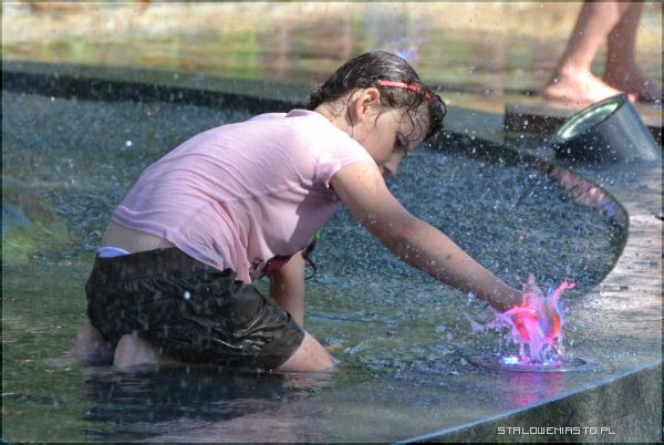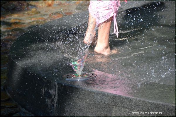 W środę przez koryto po raz pierwszy popłynęła woda, zaczęła również działać fontanna. Podświetlana, pryskająca do góry woda robi duże wrażenie, najpiękniejszy widok jest zwłaszcza nocą. Miejsce to zmieniło się wręcz nie do po znania, jeszcze rok temu była tu dziurawa, asfaltowa ścieżka, na której na okrągło przesiadywały gołębie. Wszystko było zapaskudzone i zniszczone, nie było nawet za bardzo gdzie usiąść, gdyż stare, drewniane ławki były już zniszczone i wysłużone. Teraz, kiedy prace dobiegły końca, całość prezentuje się naprawdę bardzo ciekawie.