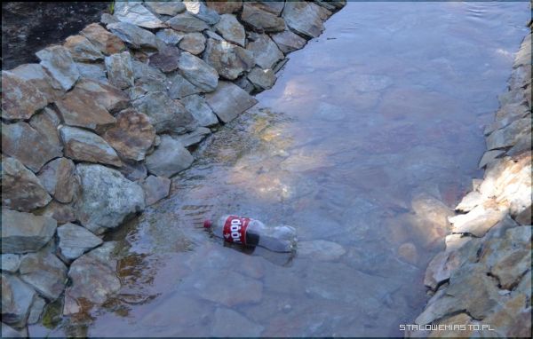 W czwartek przy kamiennych blokach pojawiły się kosze na śmieci, mimo to wiele osób zachowuje się w sposób niekulturalny rzucając papierki gdzie popadnie, czy to do wody, czy nawet do cieku. W wodzie np. pływała sobie w czwartek butelka. Jak podkreślają spacerowicze, nie to jest jednak najgorsze, wystarczy przyjść do parku po południu by zobaczyć jak wiele dzieci chlapie się w fontannie, która nie została przecież przystosowana do takiego celu. Dzieci kąpią się w ubraniach, zjeżdżają po misie fontanny, biegają, skaczą. Często też bawią się dyszami kierując wodę na różne strony, ochlapując się nawzajem. Kolejne zagrożenie to ostre krawędzie rzeźby, o które ktoś może rozbić sobie głowę, zwłaszcza kiedy panuje tutaj taka dzika zabawa. Wkrótce kamienie, po których chodzą zarówno maluchy, jak i ich rodzice, staną się śliskie, omszałe i przewrócić się na nich będzie bardzo łatwo. Po wodzie przechadzają się także dorośli, którzy podczas upału chcą się ochłodzić. Bulwersuje to tych, którzy w parku chcą pospacerować podziwiając płynąca wodę i rośliny rosnące przy niej. Wkrótce kamienie poodpadają z boków koryta, a zieleń zostanie zadeptana. Nie o to przecież chodziło.