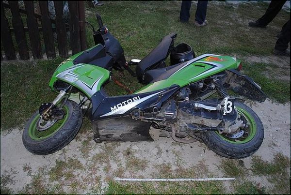 Traktorzysta myślał że zdąży skręcić,a ten na skuterku że zdąży wyprzedzić.