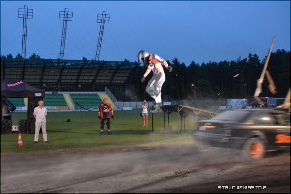 - Wiadomo, że tej pracy nie ma dużo, więc grupa postanowiła jeździć po świecie, aby trzymać tę formę, żeby robić to co się lubi. Jest to po prostu sposób na życie. W naszych pokazach najbardziej podoba się publiczności Freestyle motocrossowy. Jest to niesamowite wrażenie, kiedy motocyklista na tak w sumie niewielkiej przestrzeni, jaką jest stadion, leci na 12 metrów do góry i pokonuje odległość 21 metrów, wykonując przy tym różne ewolucje. Jest to bardzo widowiskowe. Specjalizujemy się w jeździe na dwóch kołach, wykonujemy triki, których żadna inna grupa nie wykonuje– mówi Jacek Adamczewski, manager Flott Cascaders Team.W środę wystąpili w towarzystwie swoich maszyn. Zobaczyliśmy jazdę samochodem na dwóch kołach, były też manewry zsynchronizowane, driftingi, poślizgi, skoki nad rzędem aut. Widzowie obejrzeli w akcji również motocykle, quady, wyścigi rzymskie, przejazdy przez palące się ściany, jazdę z płonącym człowiekiem, amerykańskie Monster Tracki i strzał do pędzącego samochodu z bazooki.