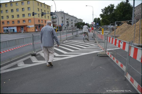 Jak sprawdziliśmy na miejscu, część kierowców, którzy nie zapoznali się z komunikatem dotyczącym utrudnień w ruchu kołowym, musiała zawracać. O ile utrudnienia kierowcom dają się we znaki, o tyle piesi są z nich nawet zadowoleni. Idąc jezdnią np. od strony Popiełuszki 6 w stronę budynku mieszczącego się przy ul. Staszica 17, gdzie stoi „Wzorcówka”, można przejść bez czekania aż zmieni się światło na zielone. Podobnie jest na kolejnym przejściu dla pieszych mieszczącym się w pobliżu bloku przy ul. Wolności 17. Tu również można iść bez czekania. Dotychczas w tym miejscu trzeba było, jak mówią piesi, swoje odstać. Jedynie na co można narzekać to ciasne, drewniane mostki, którymi aby przejść ,czasem trzeba poczekać w kolejce.