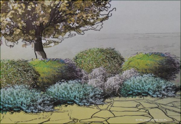 Teren zostanie obsadzony takimi roślinami jak: byliny, piwonie chińskie, tawuła japońska, pięciornik krzewiasty, bluszcz pospolity, powojniki, liliowce, róża parkowa, barwinek pospolity, runianka japońska, jałowiec. Na zdjęciach poniżej można zobaczyć wizualizację projektu, który szarą rzeczywistość przemieni w naprawdę śliczny zakątek.