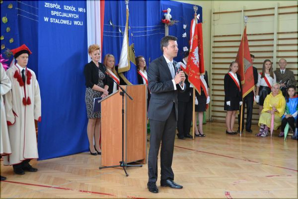 - Muszę powiedzieć, że to wielki zaszczyt dla mnie, że mogę z wami być w tym miejscu. (…) Chciałbym zwrócić uwagę, że każde dziecko, każdy człowiek jest taki sam, bez względu na stopień trudności, sprawności, godność ma taką samą. O tej godności patron tej szkoły ojciec święty Jan Paweł II, z którym miałem przyjemność się przyjaźnić przez ostatnie lata jego życia, mówił bardzo pięknie. Każde dziecko, każdy człowiek ma tę samą i taką samą (godność), dlatego należy zwracać na niego szczególną, wyjątkową uwagę, i zabezpieczać jego podstawowe, codziennie potrzeby– mówił Marek Michalak, Rzecznik Praw Dziecka.Po części oficjalnej rozpoczęła się część artystyczna z udziałem uczniów Zespołu Szkół Nr 6 Specjalnych.