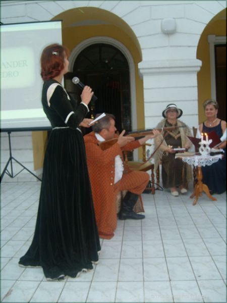 Po biograficznym wprowadzeniu nastąpiła część główna spotkania – czytanie dzieł literata. Usłyszeliśmy największe perełki twórczości Fredry – fraszki, bajki, epigramaty i fragmenty komedii wykonane z niebywałym artyzmem. Kostiumowe stylizacje lektorów, interesujący dobór repertuaru, ciekawa interpretacja utworów, inscenizacja najciekawszych dzieł, sprawiły, że na scenie wciąż wiele się działo i widz nie pozostawał z poczuciem nienasycenia. Zwłaszcza, że widzowie mieli okazję zobaczyć sławną scenę ze „Ślubów panieńskich” sfinalizowaną słowami: „Jeśli nie chcesz mojej zguby krokodyla kup mi luby!”. Wysłuchali też równie znanego dialogu Klary i Anieli przypieczętowanego słowami: „Przyrzekam na kobiety stałość niewzruszoną, nienawidzić ród męski, nigdy nie być żoną!”. Były również fragmenty „Zemsty” w zabawnej inscenizacji i wersji filmowej.