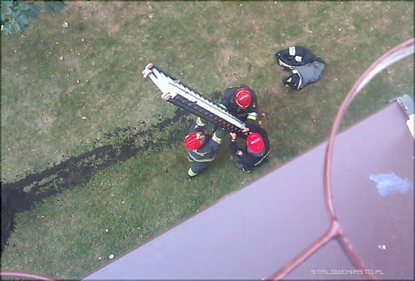 Na miejsce przybyła także policja. Według relacji zgłaszającego dym wydobywał się z okna 1 piętra czterokondygnacyjnego budynku przy ulicy Poniatowskiego. Dojazd do samego bloku okazał się być utrudniony, bo zjazd z osiedlowej uliczki na trawnik pod oknami tarasują drzewa. Przeniesiono więc na miejsce drabinę i próbowano zajrzeć przez okna od strony balkonów. Strażacy na zgłoszenie zareagowali szybko. Ratować nie było jednak czego, bowiem, kiedy przyjechano na miejsce, żadnego dymu już nie było. Okazało się, że zgłoszenie jest fałszywe, bo do żadnego pożaru nie doszło, a dym pojawił się po tym, jak jeden z mieszkańców, który po nocnej zmianie próbował ugotować sobie posiłek, po prostu zasnął i niedopilnował obiadu...