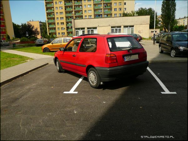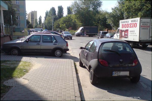 Wiele rzeczy można zrozumieć w osiedlach jest różnie, ciasno, miejsc brakuje, więc każdy parkuje gdzie się da. Myślę że każdy kto ma auto (a co niektórzy w osiedlu to i po dwa) to na swoich osiedlach nie narzekają że ten stanął na chodniku czy trawniku bo nie miał gdzie indziej. Wszytko w granicach rozsądku. Karalne powinno być parkowanie w stylu czerwonego Golfa 3 RST, czy Nexii RNI bo się takiemu nie chce ruszyć kierownicą dwa razy i poprawić. Karalne powinno być także pod marketami zwłaszcza na miejscach dla inwalidów gdzie wiecznie jakiś "inwalida umysłowy" bezkarnie parkuje bo parking należy do sklepu a tam nikt nie będzie interweniował bo przecież klienta by stracił. Można to zaobserwować przede wszystkim pod Kauflandem i dużym Tesco gdzie w przypadku tego drugiego to niedługo zaczną stawiać auta już przy kwiaciarni