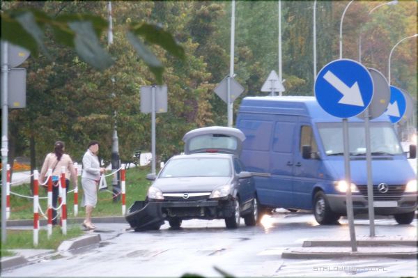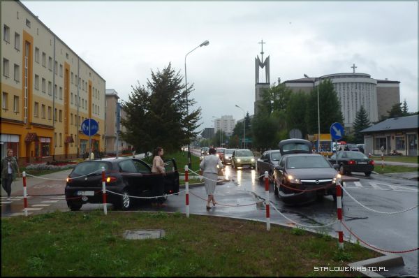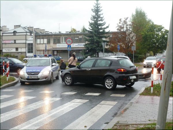 Padający cały dzień deszcz, śliska nawierzchnia i zła widoczność były przyczyną wielu wtorkowych kolizji. Jedna z nich miała miejsce ok. godz. 16.40 na skrzyżowaniu ulic Wyszyńskiego i Popiełuszki.