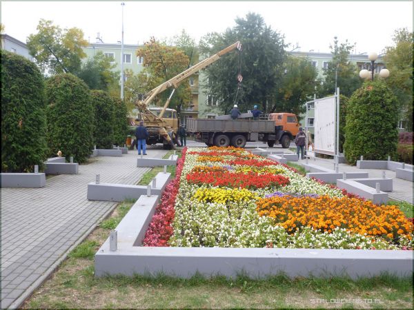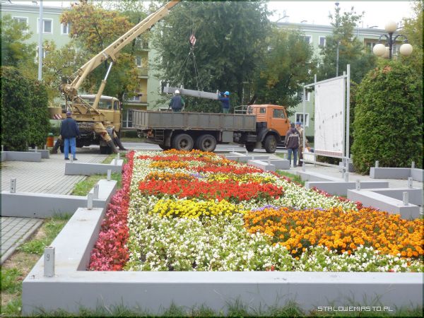 Pustą przestrzeń po wystawie między blokami na ul. Staszica zdobić będą dywany kwiatów. Być może pojawi się jeszcze inny pomysł. Jakiś czas temu proponowano utworzenie z kwiatów wypukłego herbu miasta, niestety takie rozwiązanie nie wchodzi w grę, gdyż rzeczą nieosiągalną jest zdobycie czarnych kwiatów, które byłyby odporne na zmienne warunki pogody i przetrwały dłuższy czas, a które to kwiaty są niezbędne, by taki herb mógł w ogóle powstać.