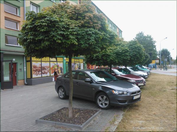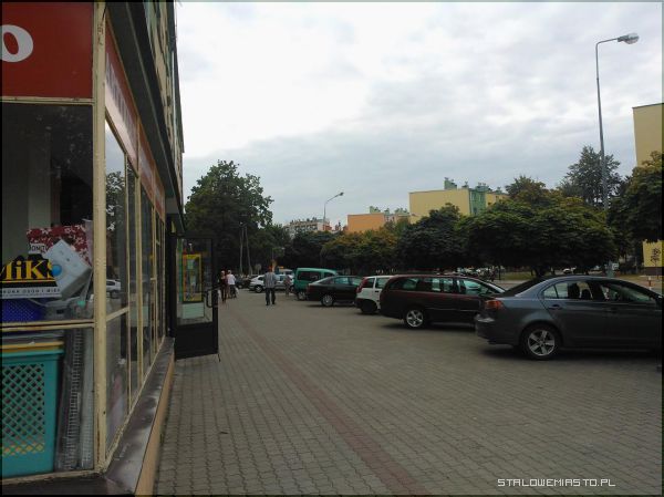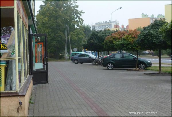 Od jakiegoś czasu placyk przed sklepami przestał służyć tylko za chodnik gdyż regularnie zaczęły parkować tam samochody. Pojazdy wjeżdżają na ten teren od strony ulicy Partyzantów lub wprost z głównej drogi obok kiosku. Kierowcy nie mają żadnego utrudnienia aby wjechać na chodnik, nie ma również żadnego znaku zakazującego parkowania. Stalowowolscy policjanci również za parkowanie w tym miejscu nie wypisują mandatów.