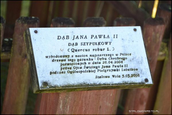 "W 2006 roku posadzony został na terenie Nadleśnictwa Rozwadów pamiątkowy Dąb Papieski, który miał upamiętniać pontyfikat naszego papieża Jana Pawła II. Nasiona, z którego zostały wyhodowane te sadzonki zostały zebrane z najstarszego dębu w Polsce, z dębu Chrobry. Zostały zawiezione w 2004 roku do Watykanu, gdzie papież dokonał poświęcenia, następnie na Śląsku zostały wyhodowane w szkółce kontenerowej i rozwiezione po całej Polsce. Dąb jest symbolem siły, symbolem mocy, rośnie bardzo długo. W związku z tym ten pontyfikat będzie upamiętniony przez setki lat- mówi dla portalu StaloweMiasto.pl Krzysztof Broniewski z Nadleśnictwa Rozwadów.