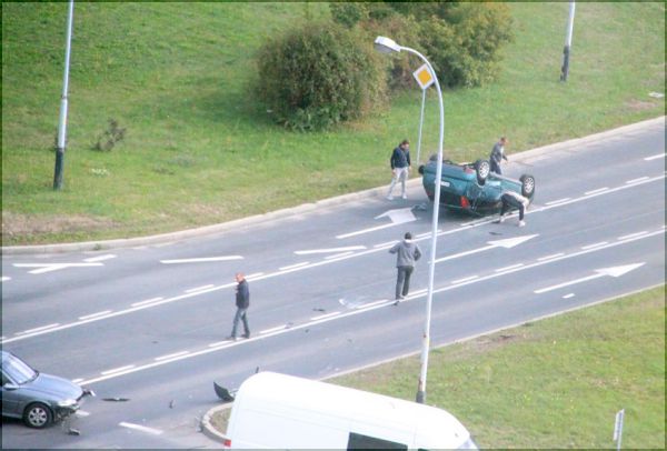 Reakcja osób z tego samochodu który również uczzestniczył w wypadku NATYCHMIASTOWA, od razu biegiem popędzili w stronę przewróconego auta żeby sprawdzić czy nic nie stało się kierowcy..brawo