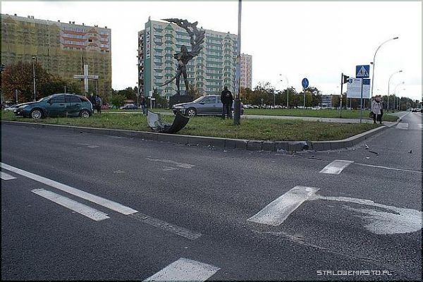 To Straż Pożarna miała blisko do miejsca wypadku. Swoją drogą to rondo jest pechowe. Czy ten pomnik nie rozprasza uwagi kierowcom ?
