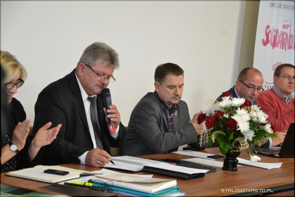 - Szanowni goście, koleżanki i koledzy z Komisji Krajowej. Dziękuję, że posiedzenie dzisiejsze odbywa się w Stalowej Woli. Jest to złożenie hołdu ludziom „Solidarności”, którzy 25 lat temu z jedynym postulatem, walczyli tylko o legalizację „Solidarności” w 3 strajkach, które odbyły się w kwietniu, lipcu i najdłuższy sierpniowy, strajk okupacyjny, dlatego chcemy was tu witać, gościć na tej sandomierskiej ziemi w Stalowej Woli tak po staropolsku, chlebem i solą - mówił Andrzej Kaczmarek.