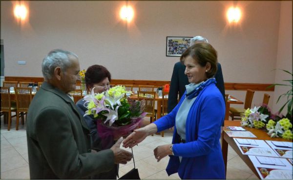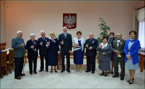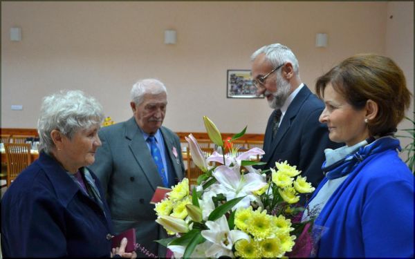 Na cześć dostojnych Jubilatów wzniesiono toast szampanem, odśpiewano sto lat oraz wręczono medale, dyplomy i okolicznościowe upominki. Po części oficjalnej Jubilaci usiedli do poczęstunku. Małżonkowie cieszyli się, że o nich pamiętano i mieli możliwość spędzenia czasu w miłej atmosferze.