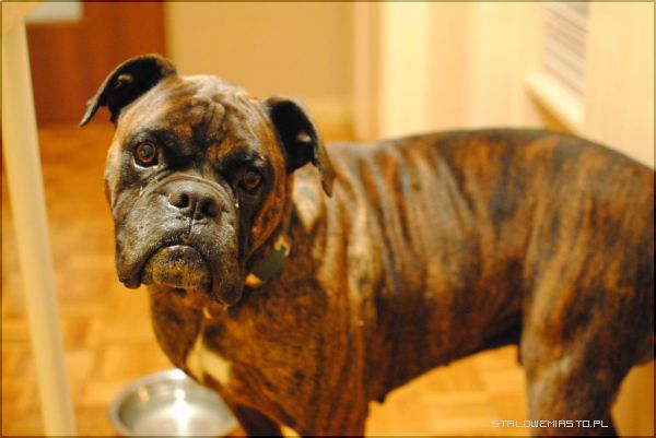 Błąkał się w okolicy ulicy Okulickiego. Prawdopodobnie zgubił się lub ktoś go wyrzucił. Któregoś dnia wszedł do sklepu, zziębnięty, by choć na chwilkę ogrzać się. Jest śliczny, mądry, łagodny i ufny. Kto pokocha boksera?