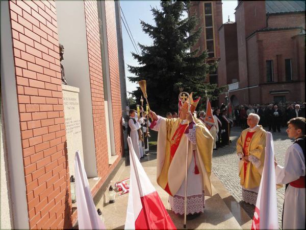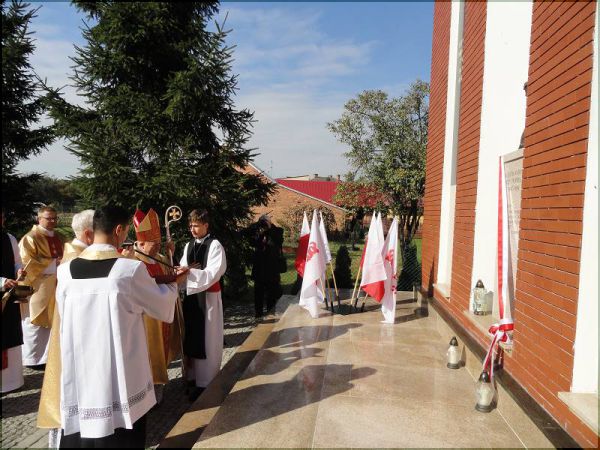 W niedzielę 6 października obyło się uroczyste poświęcenie pomnika błogosławionego Ks. Jerzego Popiełuszki. Msza święta została odprawiona w intencji naszej Ojczyzny oraz Związkowców w XXXIII rocznicę powstania Niezależnego Samorządowego Związku Zawodowego „Solidarność”. Po mszy św. J.E. Ks. biskup Edward Frankowski dokonał aktu odsłonięcia i poświęcenia kaplicy Bł. ks. Jerzego. W uroczystości wzięło udział wiele pocztów sztandarowych "Solidarności", parafian, mieszkańców powiatu oraz przedstawicieli władzy. U stóp pomnika zostały złożone biało-czerwone wieńce oraz znicze.