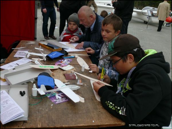 Dużym zainteresowaniem najmłodszych cieszyła się lewitująca piłka, utrzymująca się w strumieniu powietrza, którą trzeba było trafić do specjalnego pojemnika. Zadanie nie należało do łatwych. Pokazano tor antygrawitacyjny, w którym dwa stożki toczyły się wbrew prawom grawitacji pod górę i wiele innych nietypowych zjawisk. Rodzice z dzieciakami sklejali modele samolotów. Chętnych nie brakowało.
