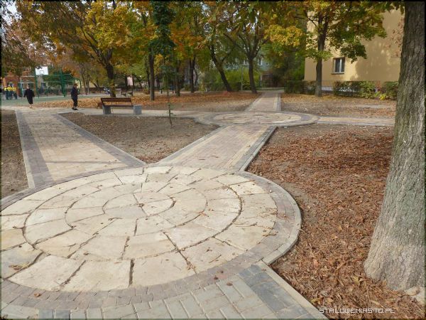 Pierwsze prace rozpoczęły się w kwietniu tego roku, obecnie są już właściwie zakończone, trwają jeszcze ostatnie prace kosmetyczne. W piątek nastąpi natomiast odbiór techniczny. Teren został wyrównany, posiano trawę oraz kilkadziesiąt drzewek i krzewów, pojawiło się wiele nowych elementów małej architektury, jednak cały efekt nieco zepsuły liście, które nierównomiernie opadając, przysłaniają to, co zostało zmienione. A obserwując zmiany zacząć należy już podłoża, gdyż pojawiło się tu wiele ciekawych, w niektórym miejscu nawet fikuśnych chodników.