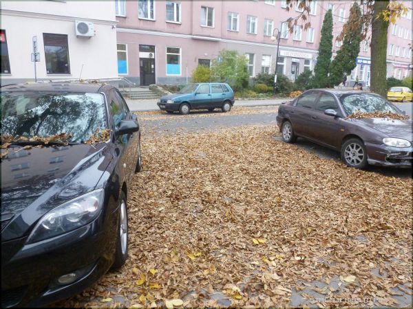 Nie brakuje miejsc gdzie liście przykryły parkingi, chodniki czy trawniki. Powstały z nich prawdziwe kolorowe dywany. Wszystkiego nie da się jednak sprzątnąć szybko i od razu, bo co rusz wiatr od nowa ścieli różnobarwnie całe miasto...