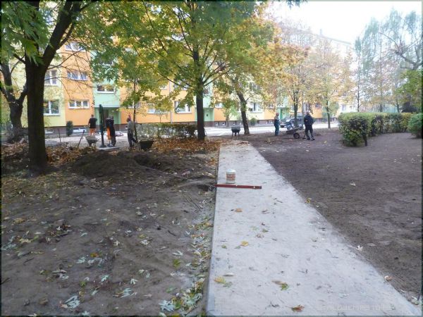 Równolegle prowadzone są prace związane z rewitalizacją terenu między blokiem Czarnieckiego 4 i 6. Część terenu należy do miasta, część do Spółdzielni Mieszkaniowej, oba podmioty dbają o własny "kawałek" podwórka. Mają tu powstać nowe miejsca parkingowe, chodniki, zostaną wymienione elementy małej architektury, teren zazieleni się dzięki wielu nasadzeniom, które przewidziano w tym miejscu. Prace powinny zakończyć się w połowie grudnia.