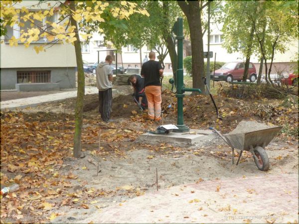 Dzięki inwestycji Spółdzielni Mieszkaniowej, dofinansowanej z Unii Europejskiej, powstały nowe chodniki z kostki brukowej. Znajdują się one nie tylko obok klatek schodowych, ale ciągną się nieco dalej prowadząc do małego placu fitness. Na nim staną trzy urządzenia do ćwiczeń na wolnym powietrzu. Podobnego typu urządzenia znajdują się w Parku Edukacyjnym. Podczas ciepłych dni były mocno oblegane przez dzieci i dorosłych. Obok urządzeń będzie znajdowała się strefa rekreacyjna, dookoła pompy z wodą, będą stały też nowe ławeczki.