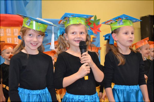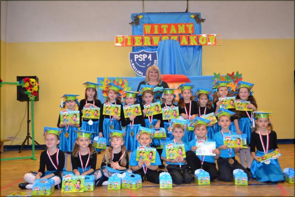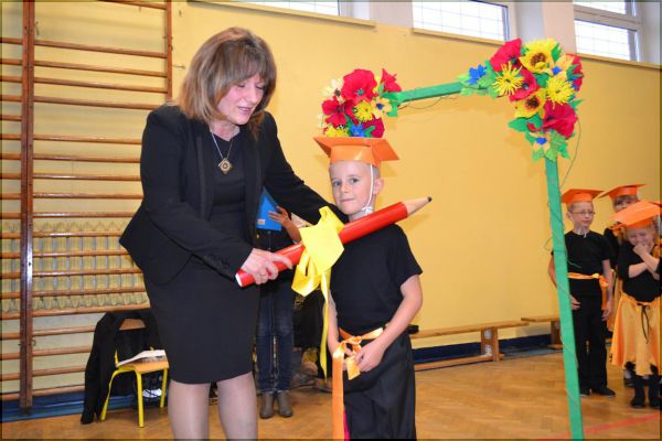 Po złożeniu ślubowania na sztandar szkoły uczniowie przechodzili przez symboliczną bramę, a następnie bylipasowani „czarodziejskim” ołówkiem przez panią dyrektor Małgorzatę Kalinkę. Każdy pierwszoklasista otrzymał pamiątkowy medal, dyplom oraz kuferek pełen słodkich niespodzianek. Sesja zdjęciowa była uwieńczeniem uroczystości.