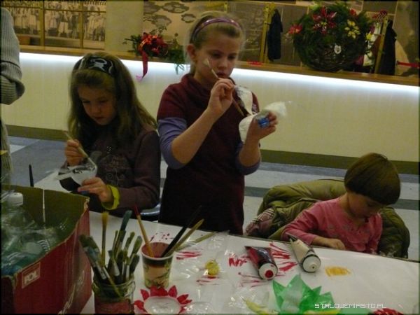 Tworzywem, z którego powstawały bożonarodzeniowe ozdoby są surowce wtórne – plastikowe butelki. Dzięki artystycznemu recyklingowi zyskały one drugie życie. Najmłodsza uczestniczka – czterolatka świetnie radziła sobie z kolorowaniem gwiazd betlejemskich. Jej starsze nieco koleżanki z wielkim zaangażowaniem tworzyły bożonarodzeniowe arcydzieła.