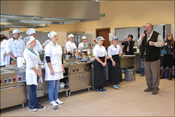 W poniedziałek, oprócz targów kulinarnych, dla szerszego grona uczniów odbył się także wykład Grzegorza Russaka dotyczący zdrowej żywności, przyrządzania dziczyzny oraz naszych polskich, rodowitych potraw. Można było dowiedzieć się różnych ciekawostek np. tego, dlaczego pierogi ruskie właśnie w ten sposób się nazywają. Jak podkreśla mistrz kuchni polskiej, nie umiemy docenić tego, co mamy, nie pielęgnujemy tradycyjnych potraw, tylko wybieramy kuchnię chińską, włoską itd. Najczęściej otwieranymi lokalami gastronomicznymi, także i w Stalowej Woli, są właśnie te, które serwują tureckie kebaby, włoską pizze itd.