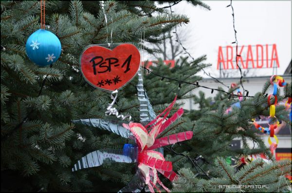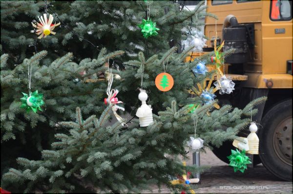 Na Placu Piłsudskiego stoi już pięknie ubrane bożonarodzeniowe drzewko. Takich ozdób nie miała żadna miejska choinka nigdy wcześniej. Na pachnących gałązkach kołyszą się m.in. aniołki z plastikowych butelek, gwiazdy z papierków, bombki z ping-pongów...