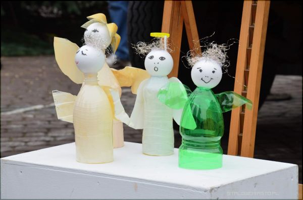 Pomysł na taki rodzaj przystrajania poddali słuchacze Uniwersytetu Trzeciego Wieku. Ozdoby powstały pod czujnym okiem Danuty Cebuli i Lidii Biernat podczas warsztatów ekologicznych ozdób choinkowych. Na gałązkach wiszą teraz m.in. aniołki wykonane z plastikowych butelek, przeróżne papierowe gwiazdy, bombki i serca...