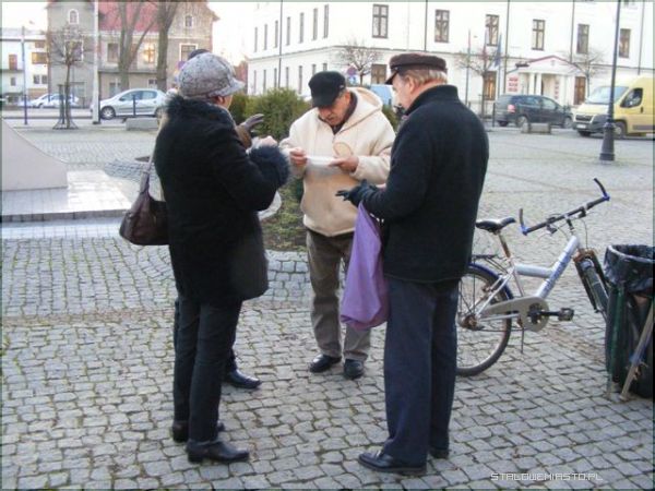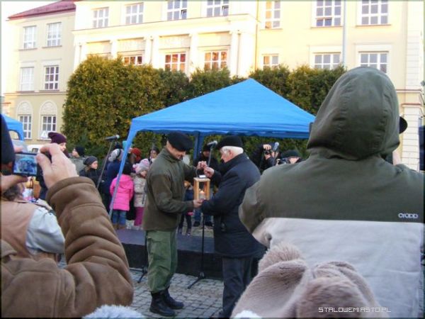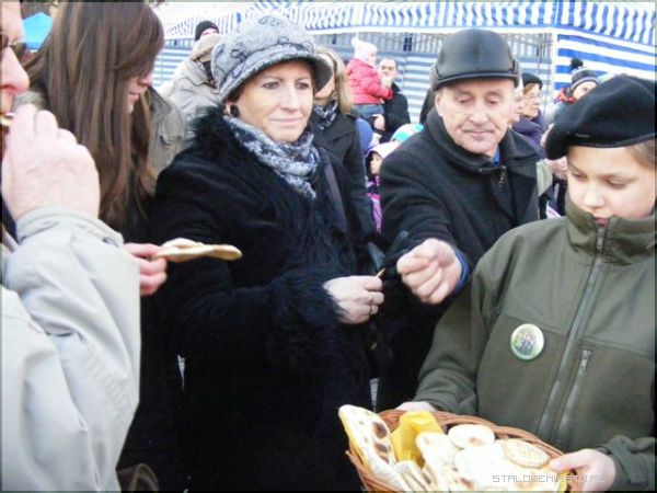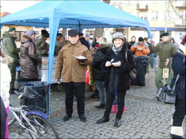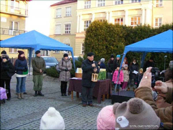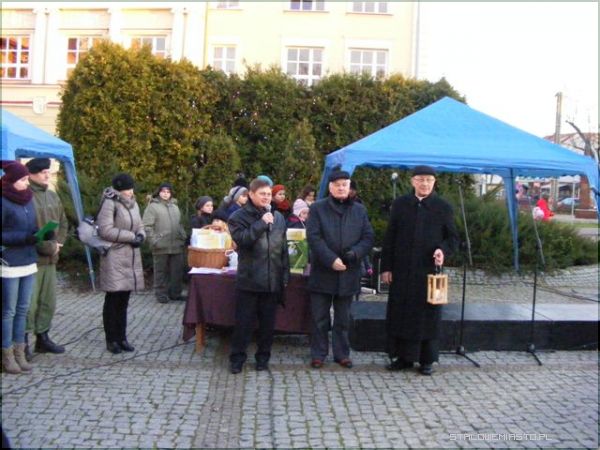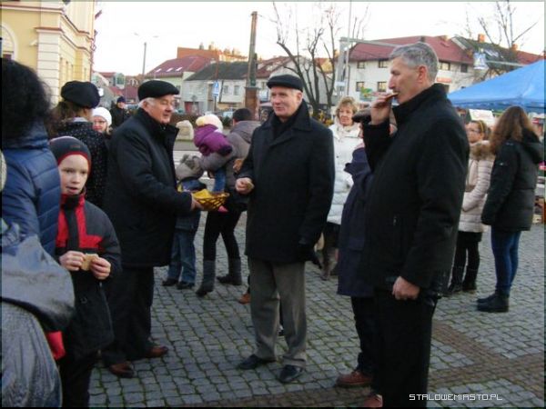 Pierwszym zgrzytem był czas spotkania. Kiedy organizuje się wigilię w środku tygodnia i na dodatek rozpoczyna się ją o 13:00, trudno liczyć na frekwencję. Zapewne niejeden chciałby nabyć i świąteczny wianuszek, i ozdobę na stół, i małą choinkę, świeczki czy kartki, bo i cel szczytny, i święta za pasem, ale o tej porze, mimo, że w powiecie panuje gigantyczne bezrobocie, ci, którzy mieliby ochotę wyjąć z portfela pieniądze, byli po prostu w pracy. Na wigilię stawiło się więc mniej osób niż w roku ubiegłym, a szkoda, bo organizatorzy: Komenda Hufca ZHP im. Szarych Szeregów czy Niżańskie Centrum Kultury Sokół postarali się. Harcerze uwijali się na placu oferując barszcz czerwony i kapuśniak z grochem, wprawdzie pierogi były ruskie i trochę z kapustą, no, ale cóż... kryzys. Było miło i przyjemnie. Do zgromadzonych przemówił przedstawiciel miasta burmistrz Julian Ozimek i przewodniczący Rady Miasta Waldemar Ślusarczyk jako współorganizatorzy. Do życzeń dołączył się lokalny ks. proboszcz. Ci, którym udało się dotrzeć na Plac Wolności i wziąć udział w wydarzeniu mogli popatrzeć na rozstrzygnięcie konkursu na najpiękniejszą szopkę. Gdyby dopisała frekwencja i wydarzenie było porządnie nagłośnione, bo zapewne o to będą mieć jutro pretensje mieszańcy Niska, dzieciaki nie musiałyby śpiewać dla nielicznej, choć tak ważnej publiki.