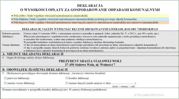 Poprzednio aż 3/4 mieszkańców miasta błędnie wypełniło deklarację, dlatego też wzywani byli do magistratu po to, by nanieść korektę. Korzystając z pomocy urzędników, można było tego uniknąć. Deklarację klient wydrukuje ze strony www.odpady.stalowawola.pl lub może ją wziąć sobie z magistratu. Wnioski ponownie muszą składać właściciele domów jednorodzinnych, firmy oraz instytucje. Z tego obowiązku zwolnieni są mieszkańcy bloków, bo za nich zrobią to zarządcy budynków. Wiele osób pyta dlaczego po raz kolejny trzeba dopełnić tej formalności?