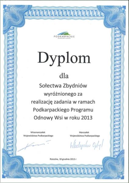 18 grudnia br. w Urzędzie Marszałkowskim Województwa Podkarpackiego odbyło się spotkanie podsumowujące drugi rok funkcjonowania Podkarpackiego Programu Odnowy Wsi. Pieniądze z tego programu są wykorzystywane na różnego rodzaju zadania aktywizujące lokalne wiejskie społeczności. W tym roku samorząd województwa przeznaczył na realizację programu 875 tys. zł, z czego 10 tys. otrzymało sołectwo Zbydniów.
