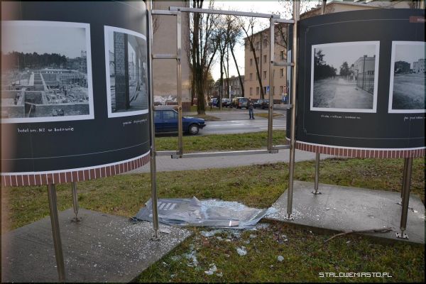 Nowa wystawa już nie cieszy mieszkańców. Ktoś ją po prostu zdemolował. W tym mieście robi się coraz bardziej niebezpiecznie, skoro w środku Stalowej Woli, w miejscu oświetlonym i gwarnym dochodzi do takich aktów…