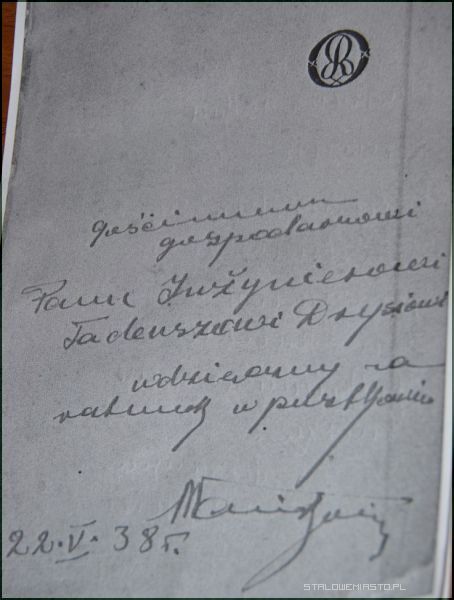 Pamiętam tę całą historię znajomości mego Taty z pisarzem z opowiadań mego Ojca, a sprawa z zepsutym samochodem, była tylko jednym z epizodów… Ojciec jeździł z Wańkowiczem po „COP-ie”, pisarz (z ramienia Rządu) interesował się projektem i rozwojem Centralnego Okręgu Przemysłowego, a mój Ojciec był bardzo dobrze zorientowany w temacie. Melchior był nawet u nas w domu. Na spotkaniu w 1959 r. (w dawnym kinie Wisła) byłem (jako młody chłopak) obecny, kiedy Wańkowicz i mój Tato uściskali się serdecznie po latach... Stąd ta druga dedykacja... Ojciec przyniósł ją (książkę) na to spotkanie autorskie. Książka była wtedy oczywiście w całości. Mnie Wańkowicz wpisał dedykację do innej swojej książki– pisze w e-mailu Jerzy Dryś.